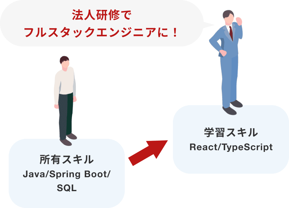 企業の開発環境に最適化したカリキュラムで、わずか2ヶ月で現場即戦力としてジョイン。